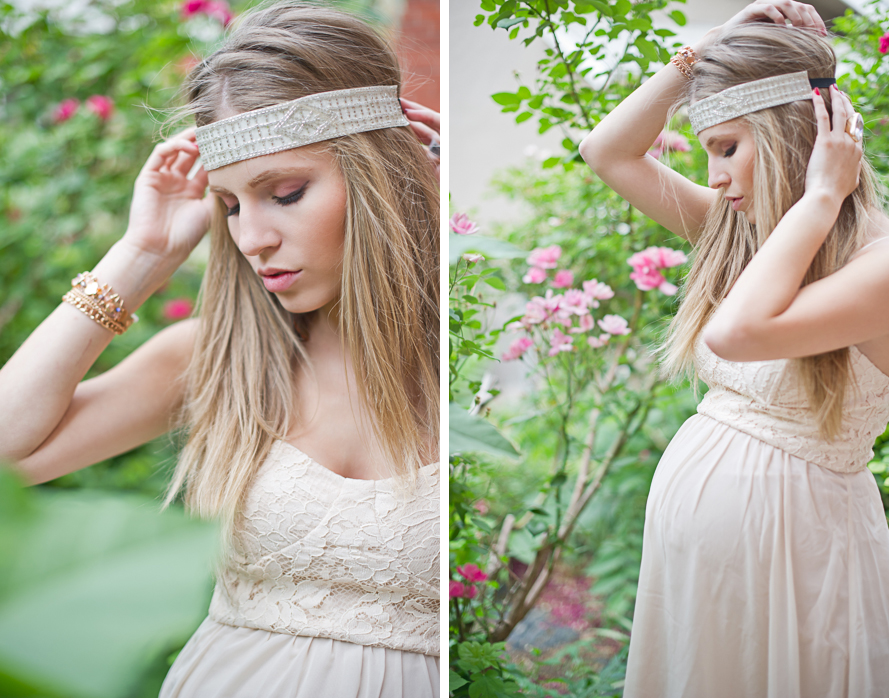 Bandeau Top, Metalic Skirt, Bracelet, Ring, Headband: Francesca’s Collections | Dress: Forever21