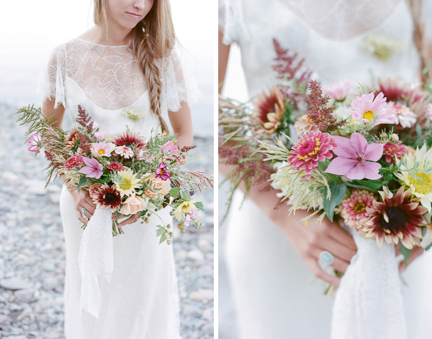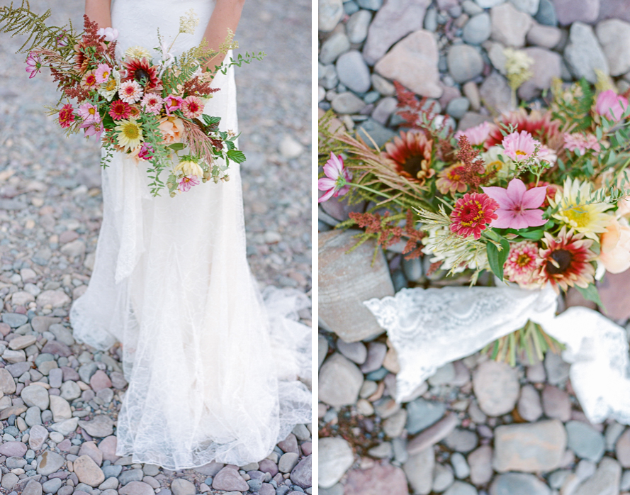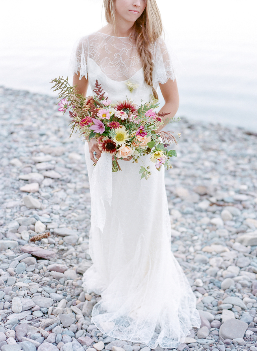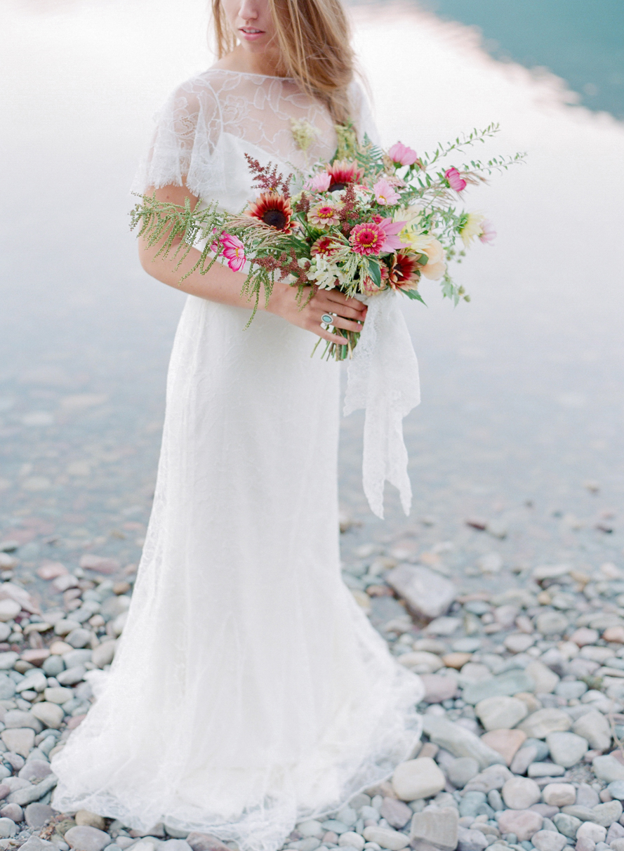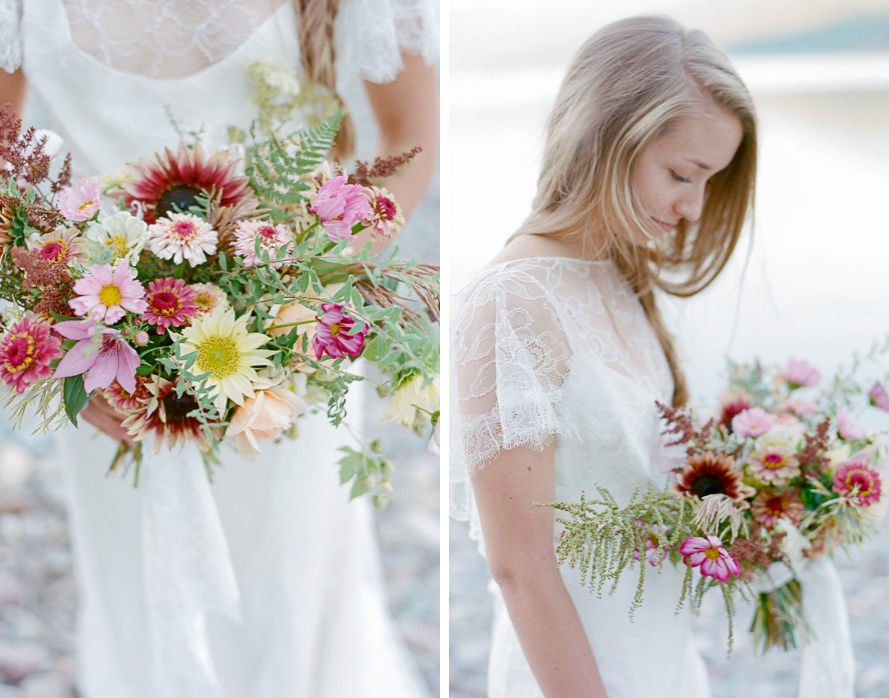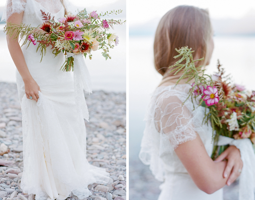 After a stunning wedding in Montana last fall, Greenwood Events and I spent an evening at McDonald Lake, feasting our eyes on a cotton-candy sunset that melted over a glass lake beneath the breathtaking backdrop of Glacier National Park. And we styled organic-like bridal inspirations with a beautiful, barefoot bride, who cradled a bouquet of sunset-colored flowers grown entirely by Greenwood Events. Darci & Arden Greenwood are true artists and genuine talents.
