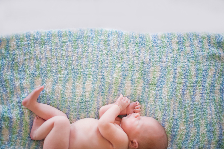 Basket & Kitted Pouf: World Market | White Blanket: Ikea | Blue Blanket: Handmade by “Grandma”