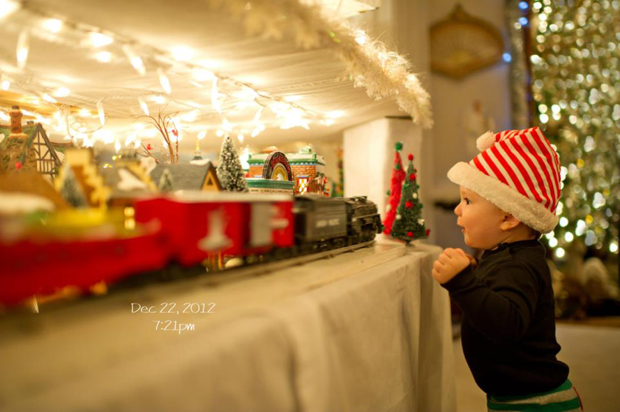 It just wouldn’t be Christmas without visiting Karen’s House. A long-time friend of our families, she’s been a part of my Christmas’s since I was just a tot. Her house is magical. A Christmas Wonderland. And Santa visits there every single year. He even left his boot! We took you there again this year, but this time, you weren’t just sleeping in my arms. No, this year, you ran around her house in a dazed wonder. Your eyes danced and sparkled the entire night and it wasn’t just the reflection of Christmas lights…I could tell you were entranced with the whole sight. But then you saw this train. And I almost missed capturing this moment of sheer elation on your face! I had no idea you’d even notice it, let alone want to stand there and keep watching it pass by. You were so good not to touch it…and really I’m not sure how that’s possible. But you watched until we had to leave. Your little eyes became so heavy even though your heart was light. I saw you trying to convince yourself you could stay awake forever…but since you’d skipped your nap, you crashed in the car almost before daddy could buckle you in…and when we carried you inside to your room, you didn’t wake up. Not for one second. I can only imagine you were dreaming of a sparkly Santa boot, a magical Christmas train, and quite possibly a few sugar plums. I miss being a kid at Christmas…but it sure is fun to re-live those moments watching you.