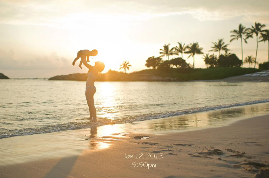 I have waited for this moment for a long time. You. Me. And Daddy. Walking along a totally white & sandy beach–splashing in the ocean, and soaking up the very last rays of sun for the day. This is us. In our happy place.
