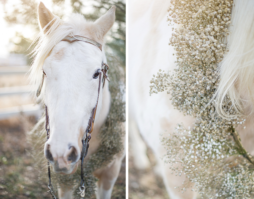 The dress, the makeup, the horse, the FLOWERS. I’m still swooning.