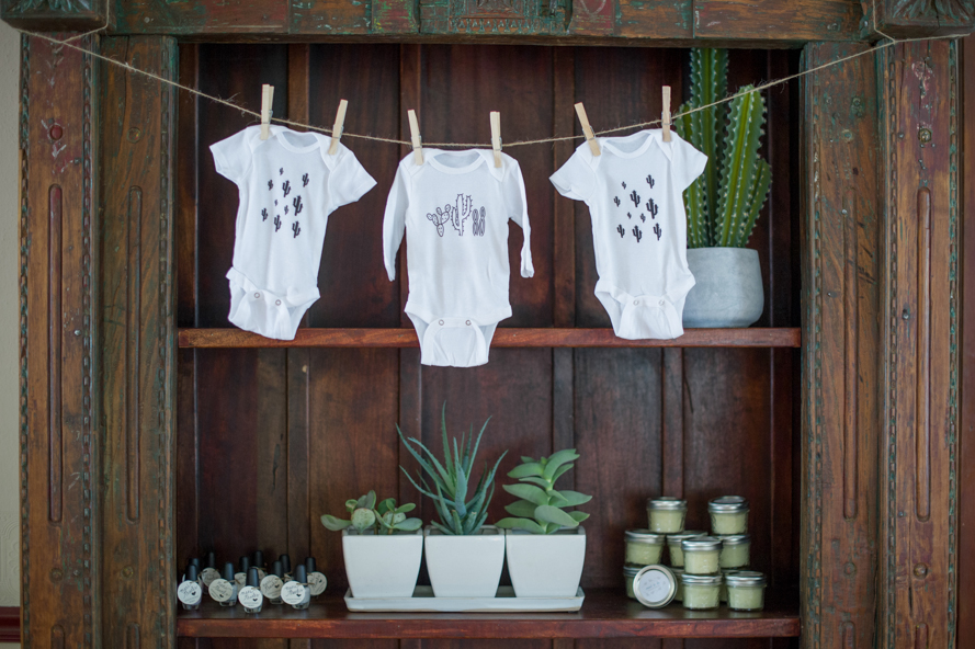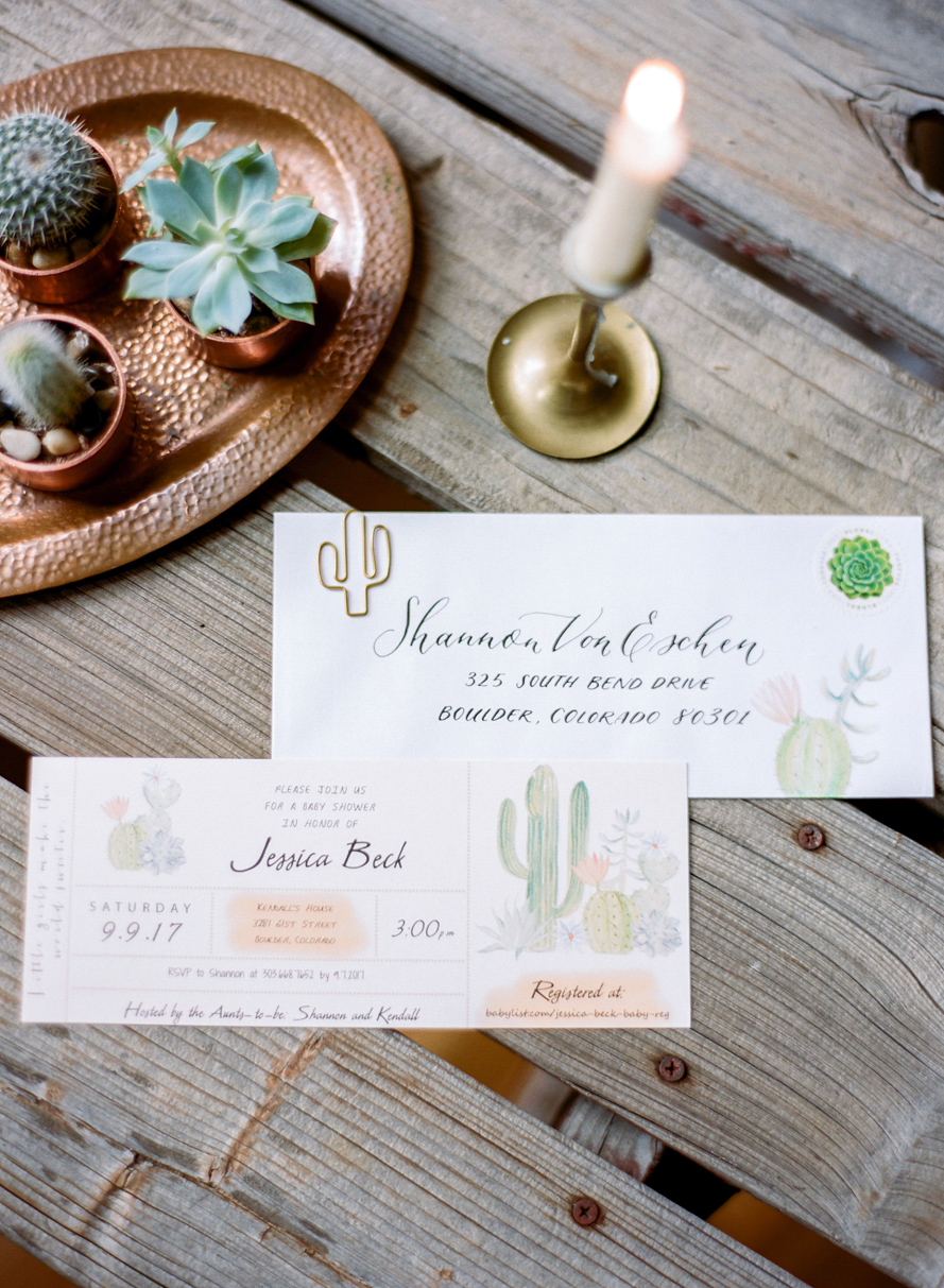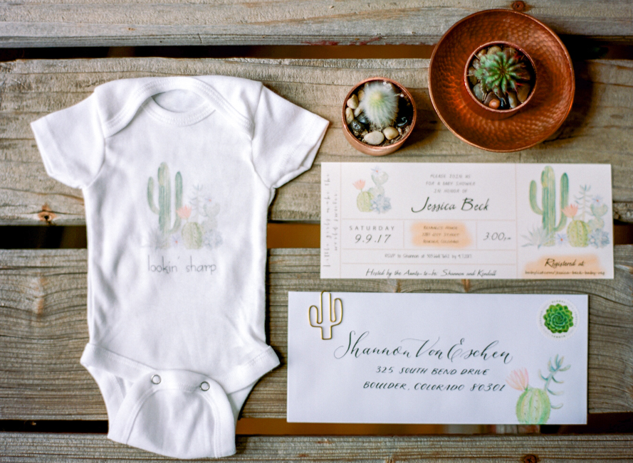 Invitation Calligraphy: Taryn Eklund | Custom Cactus Onsies: Alan Crabbs