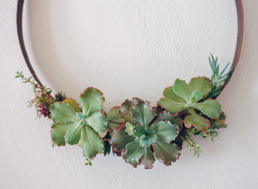 Potted Copper Succulents + Succulent Wreath: Amy Von Eschen | Copper-Pipe Cake Stand: Jason Von Eschen