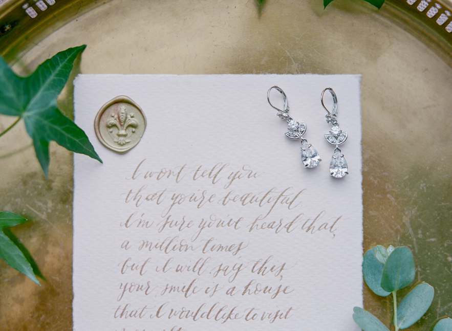 Earrings: Marchesa Fashion | Invitations & Calligraphy: Kelsey Malie Calligraphy