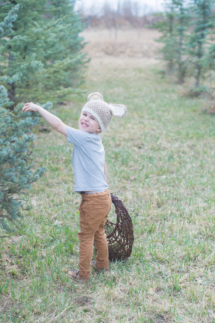 Ever since his first Easter at age one, I’ve been hiding Eggs in the fields of our Spruces trees for Eli to find. He’s never tired of it, and neither has this Mama! And my favorite part is that you can hardly call them “hidden.” All he has to do is find which tree they’re in–and at six years old, he’s learned almost all my tricks. After so many years, little has changed. But this year…he’s finally had a growth spurt!! So we definitely had to buy a whole new wardrobe! I love tradition so much, and will mourn the day he stops saying, “Mommy, can we hide these eggs again?!” ♥