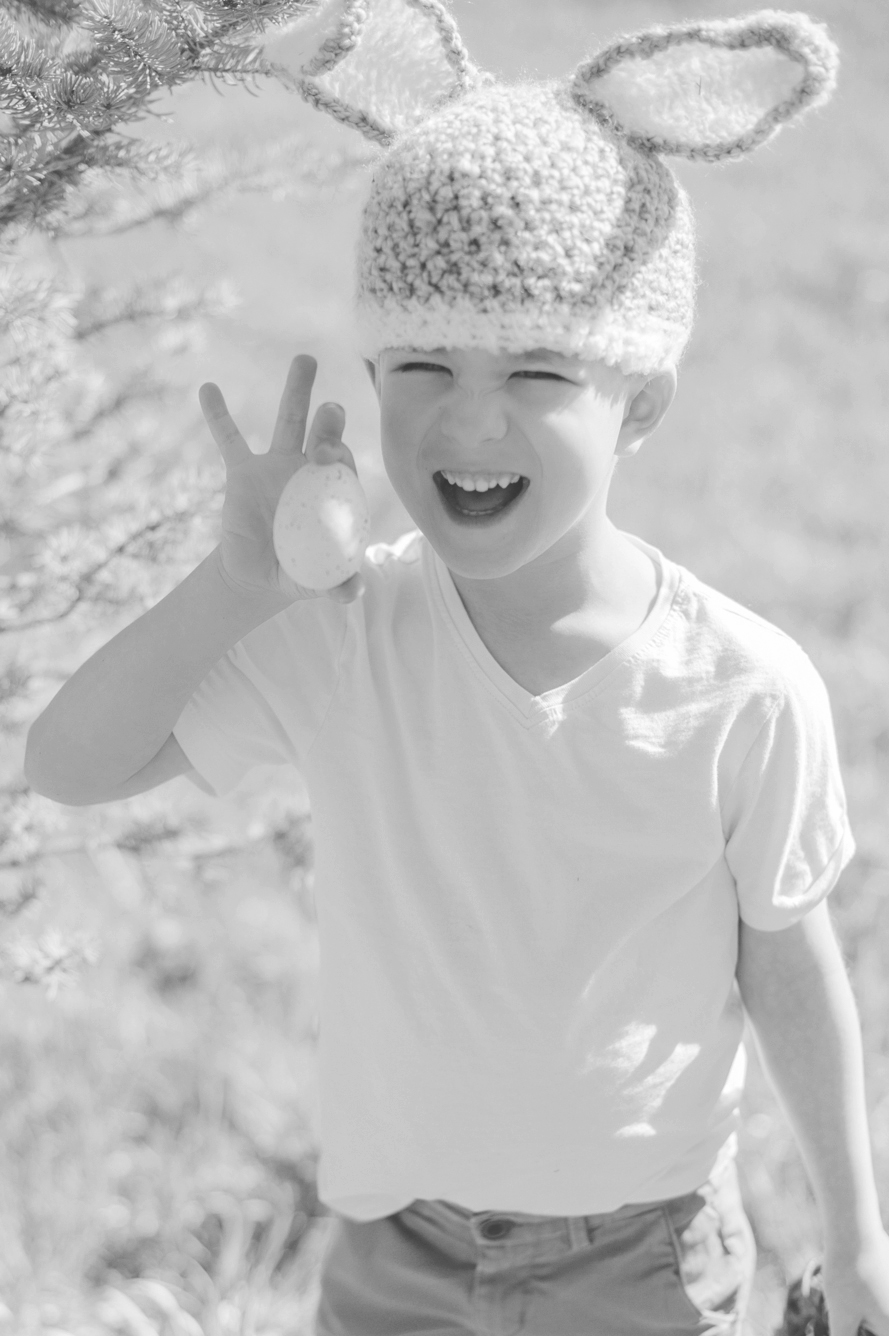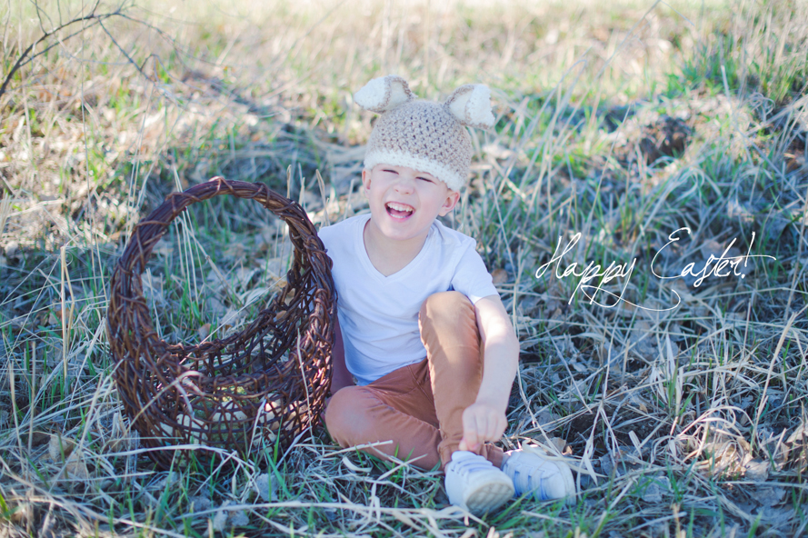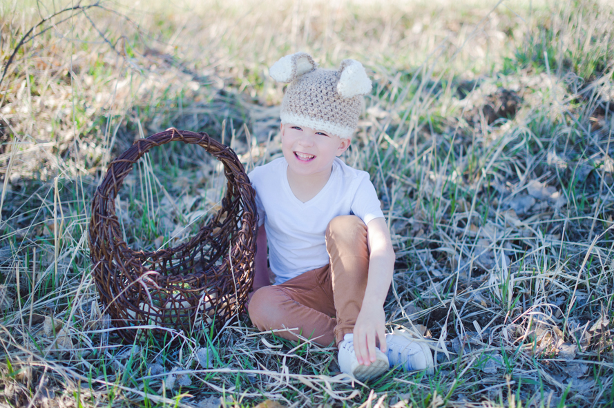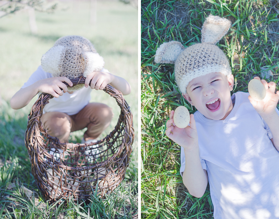 Eli, for seven years we’ve hunted eggs. And yet this year, was the fastest we’ve had to do it ever! Rising early before work on Easter weekend we grabbed your basket and went out into the sunshine of our field—the birds chirped so loudly around us and it felt like magic! As is customary, I hid eggs first and then you hid them for me, but almost always they’re just sittin’ in plain sight. ♥ Especially this year since most our trees were missing after our Christmas Tree cutting season in December… Ha, you could see right underneath and through each one! Still, in the few minutes we had to run around that field, you made my heart smile so big and I love how much you adore our little traditions. Though your bunny hat sits high over your ears, you insisted on wearing it. I most definitely didn’t argue. I love you, Eli! My sweetest Easter Bunny.