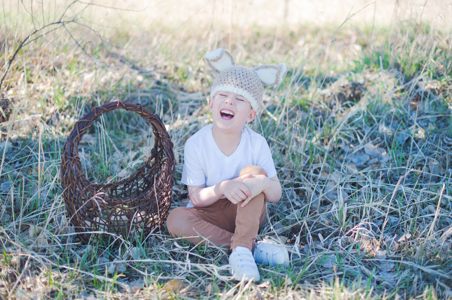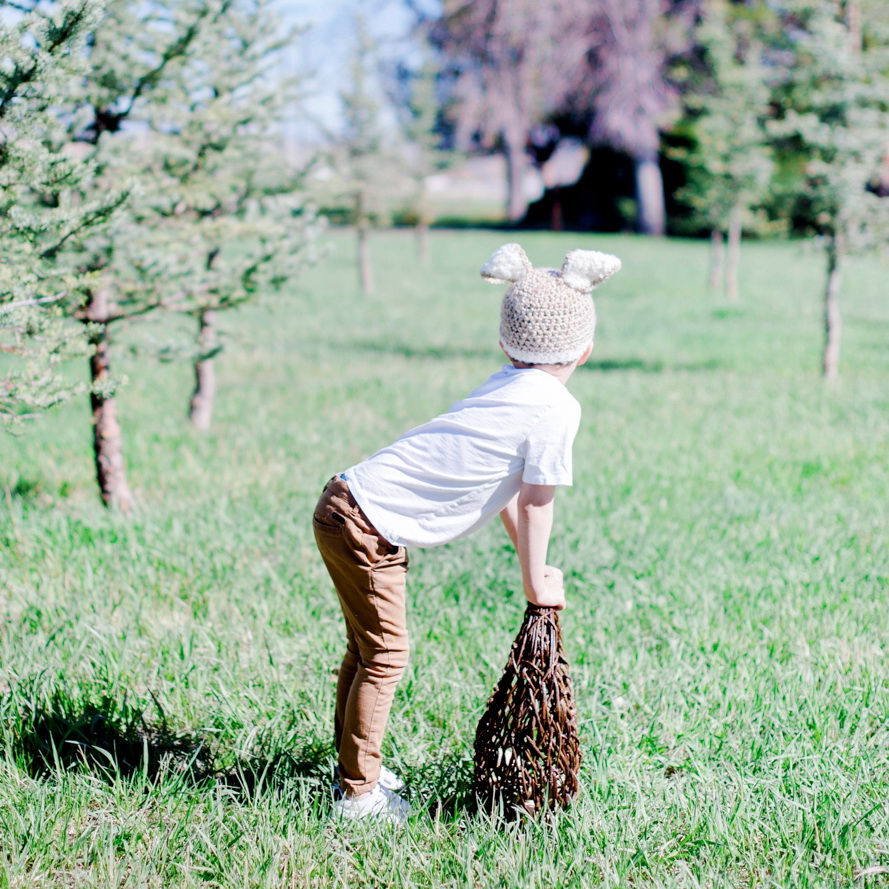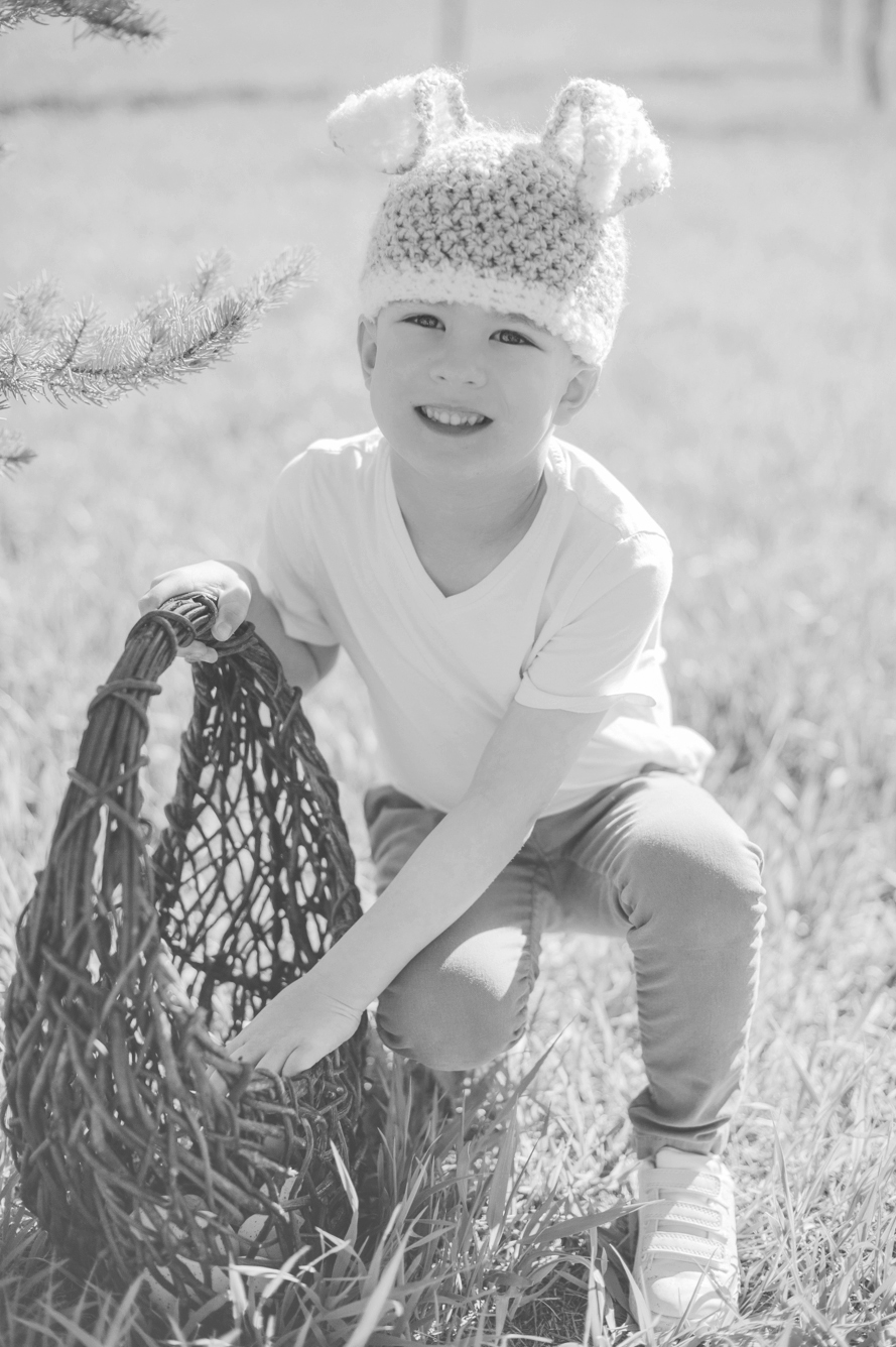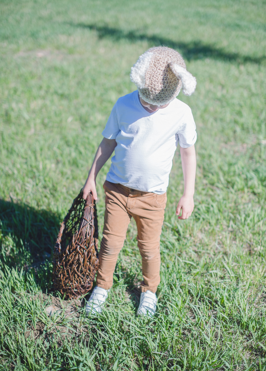 Eli, for seven years we’ve hunted eggs. And yet this year, was the fastest we’ve had to do it ever! Rising early before work on Easter weekend we grabbed your basket and went out into the sunshine of our field—the birds chirped so loudly around us and it felt like magic! As is customary, I hid eggs first and then you hid them for me, but almost always they’re just sittin’ in plain sight. ♥ Especially this year since most our trees were missing after our Christmas Tree cutting season in December… Ha, you could see right underneath and through each one! Still, in the few minutes we had to run around that field, you made my heart smile so big and I love how much you adore our little traditions. Though your bunny hat sits high over your ears, you insisted on wearing it. I most definitely didn’t argue. I love you, Eli! My sweetest Easter Bunny.